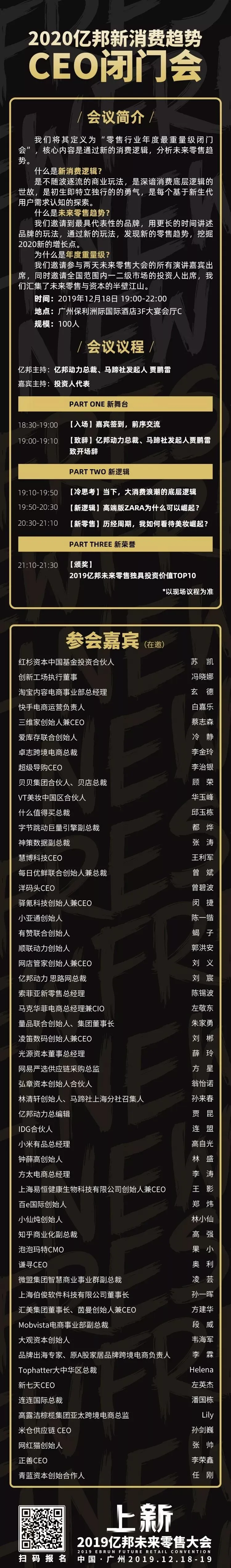 我们将其定义为“零售行业年度最重量级闭门会”,核心内容是通过新的消费逻辑,分析未来零售趋势。