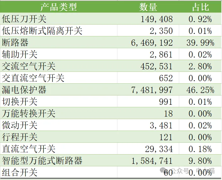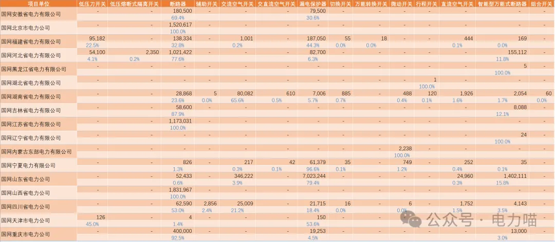 表4 国网低压开关产品中标企业(数量份额超过1%部分)