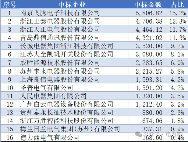 2023年度,南网范围共有16家企业中标低压开关产品。