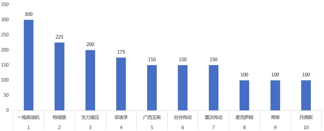 2012—2020年度中国农业机械年度TOP50+人才分前十情况特瑞堡和一拖柴油机就不多说,下文还会专门介绍介绍。我们来看潍坊悍沃和中机美诺这两家企业,潍坊悍沃在大型拖拉机领域取得的进步,让人惊艳;同时,中机美诺在青饲收获机领域的成功以及行业引领作用,同样引人注目。当然,一拖、雷沃这样的大企业依然人才在线。但可惜的是,有些外资企业其实在人才方面做了很不错的工作,由于企业性质的原因,并没能够凸显出来,有点可惜。这项工作,我们组委会也会加强改进升级,以体现行业真实情况。供应商的能力决定了行业的发展上限,农机行业本来供应体系本就非常复杂,作为考量行业综合实力的重要因素,对供应商进行考察也意味着很多。