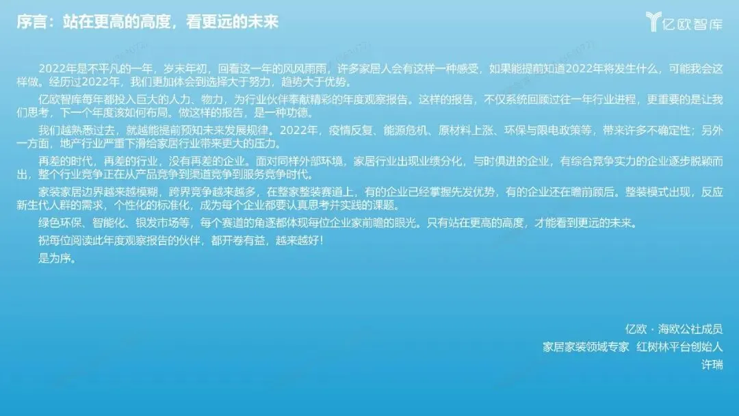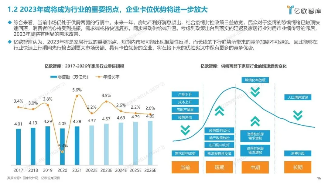 2023年将是家居行业的重要拐点。短期内市场可能出现报复性反弹,而长线的下行趋势所带来的竞争加剧不可避免。