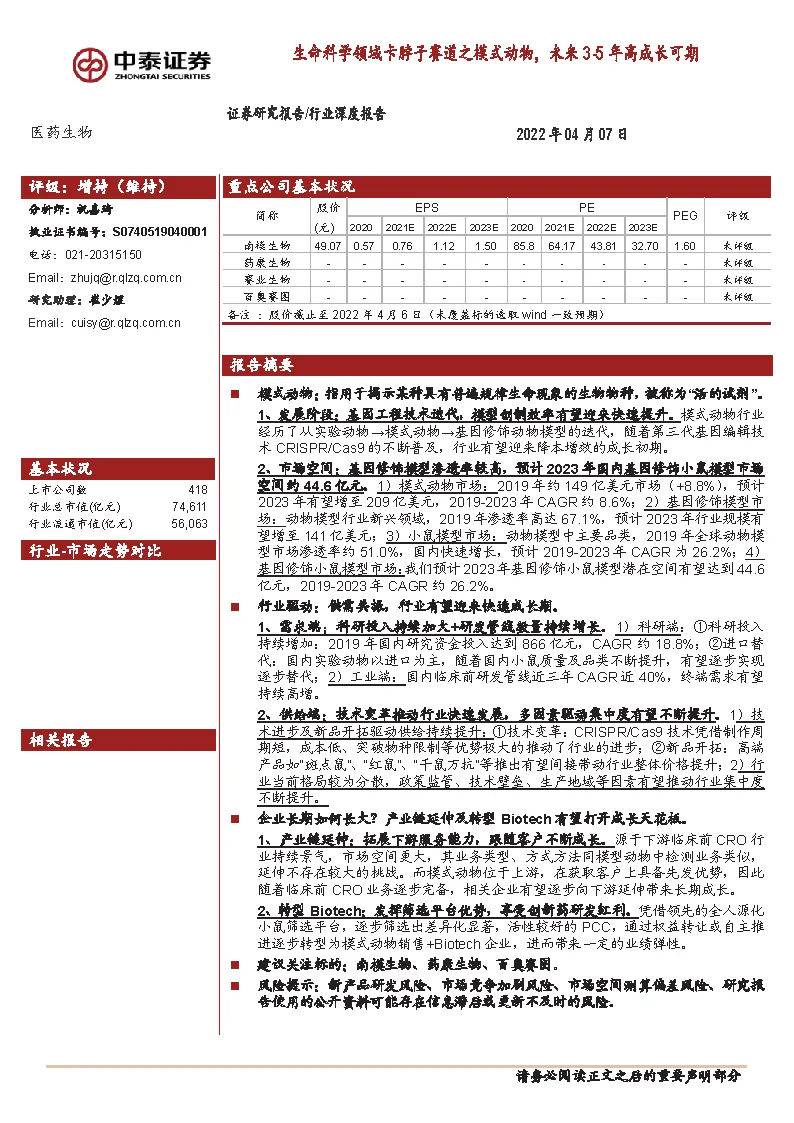 欲获取完整版《20220407-中泰证券-医药生物行业:生命科学领域卡脖子赛道之模式动物,未来3-5年高成长可期》,请扫描上方二维码,关注本公众号并回复关键字“220407模式动物”,即可获取!