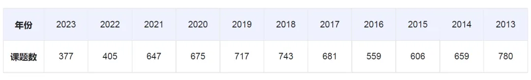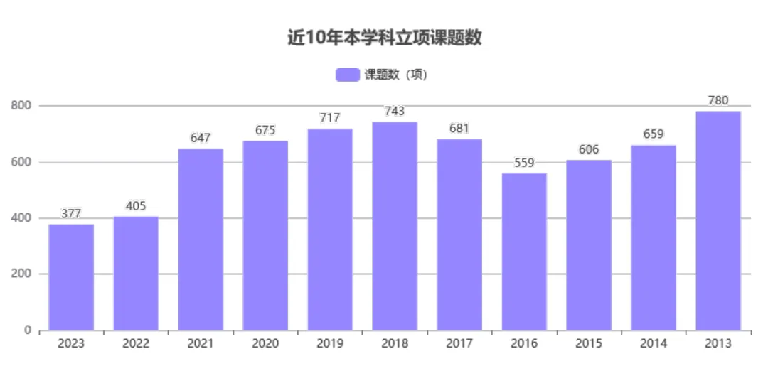 总体呈现下降趋势。其中,2013年立项数量最多,为780项,2023年立项数量最少,为377项。