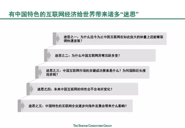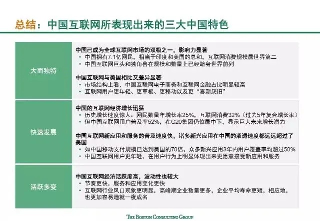 因此,在关注的目光背后,世界对中国互联网充满了无限的好奇:中国互联网如何在短时间内取得飞跃?它呈现出哪些独一无二的中国特色?这些特色从何而来,未来又将何处去?为了回答这些问题,由波士顿咨询公司(BCG)牵头,联合阿里研究院、百度发展研究中心和滴滴政策研究院共同进行调研并撰写了报告《解读中国互联网特色》。