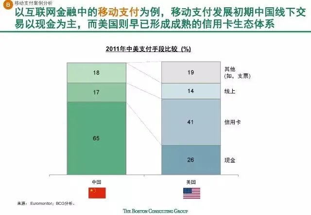 2016年度,中国移动支付交易规模实现8万5千亿美元,高达美国同期的70倍以上