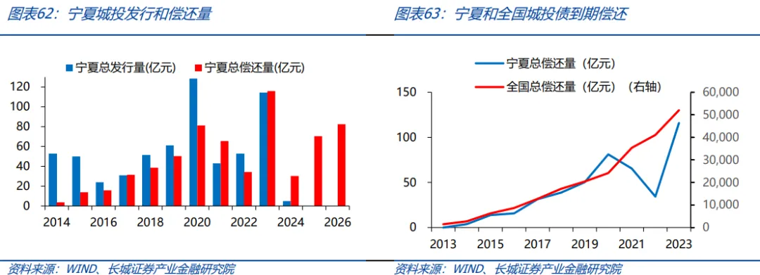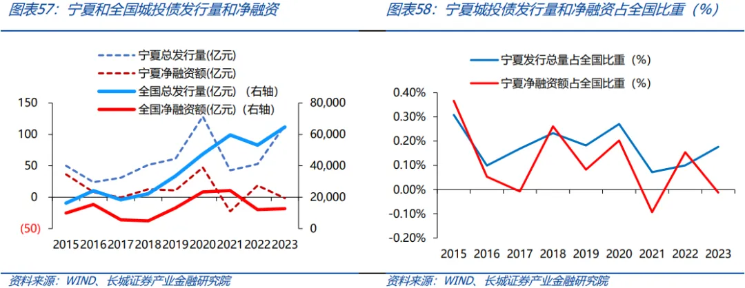 2015-2023 年宁夏城投债总发行量波动较大,年均增长率为 30.67%,其中 2021 年发行量减少 66.6%,与全国年均增速 21.8%形成明显对比。