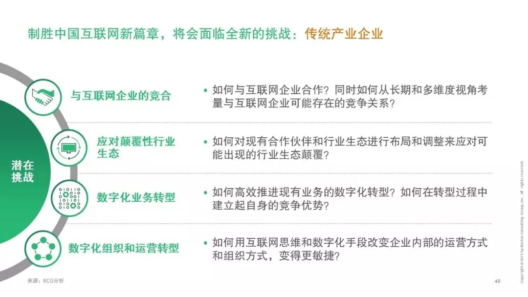 近日,BCG再次联手中国互联网巨头,解读近期中国互联网逐步加强的产业融合趋势。报告将对市场广泛关注的相关问题进行充分探讨,包括为什么近期中国互联网企业更加积极地走向产业互联网?在中国,消费互联网和产业互联网是何种关系?中国互联网企业在产业数字化进程中起到什么作用?如何在中国互联网的新篇章中胜出?