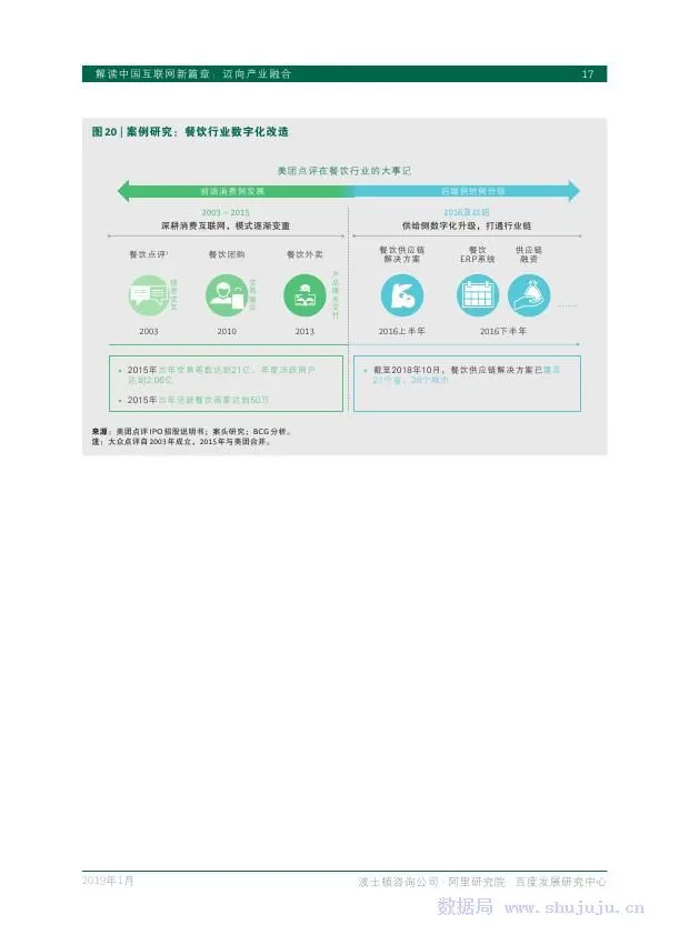 BCG、阿里研究院、百度发展研究中心再次联手,解读近期中国互联网逐步加强的产业融合趋势。报告将对市场广泛关注的相关问题进行充分探讨,包括为什么近期中国互联网企业更加积极地走向产业互联网?在中国,消费互联网和产业互联网是何种关系?中国互联网企业在产业数字化进程中起到什么作用?如何在中国互联网的新篇章中胜出?等等。