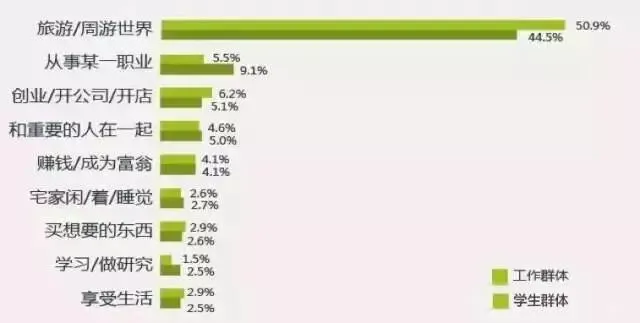 90后最渴望的事情是旅行,其中旅行愿望最为迫切的是工作中的90后,达50.9%,学生群体外出旅行的愿望为44.5%。“世界这么大,我想去看看”,90后出行不讲究吃、住,更在意能够深入了解当地生活,增加见识和体验。近年来,穷游、驴行受到90后的追捧。