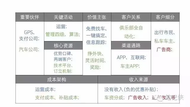 描绘运营一个商业模式所引发的所有成本,如果成本大于收入,可持续性不强。以上门洗车为例,成本架构有问题,每增加一个客户成本都会增加,商业不可持续。很多O2O,送餐等只是把原有服务变为互联网服务而已,成本架构没有改变,只是用补贴形式去做,没有变为常规,成本大于收入,不可持续,到目前为止能烧钱的不超过五家。