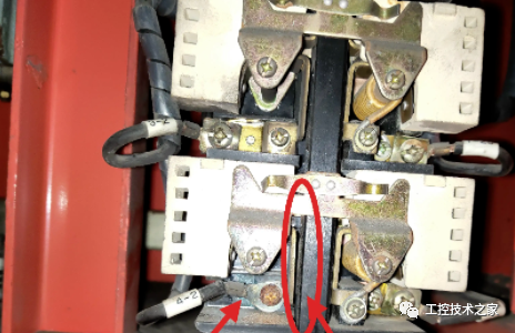 换新的接触器又是开单又是审批,估计没三个小时下不来,那就只能明天处理了,等不了,于是把接线改到固定这个静触头的螺丝上,需要注意的是在拧紧这颗螺丝的时候要在静触头和中间动触头连杆之间垫上一把小螺丝刀,不然要么拧不紧,要么会使静触头压迫动触头连杆,使连杆上下活动卡死,如图
