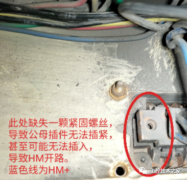 冷静冷静……之前合闸正常现在合闸失败,分闸有时能分有时不能分,机械部分故障可排除,那么就应该是控制或合闸回路有问题(合闸直流接触器能动作,说明控制回路的嫌疑可排除,那么直接查合闸回路),测开关柜合闸电源正负极间有230V电压,测手车开关合闸回路保险正负极间0V(别问我为何不直接测正负极对地电压,以便确定哪根电源断线,有内情……手动滑稽),说明合闸回路断线,经过仔细排查,发现二次插头处少一颗固定螺丝,如图