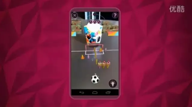 游戏非常简单,用户打开定制APP,用手机屏幕对准薯条包装盒正面,当手机识别出图画后,手机屏幕上就会出现一个虚拟足球场,薯条包装盒是球门,其他内置物体是障碍物。玩法是滑动手指“踢”球,避开障碍物或利用障碍物把球踢进球门。