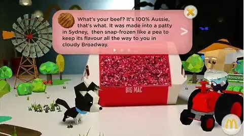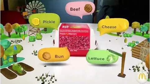 澳大利亚麦当劳也推出过一款基于AR技术的APP,用户使用其扫描麦当劳购买的食物后,出现AR动画,展现食材的来源、生长、制作过程,同时还可以了解制作师傅、农场师傅等信息,让大家“吃得放心”。