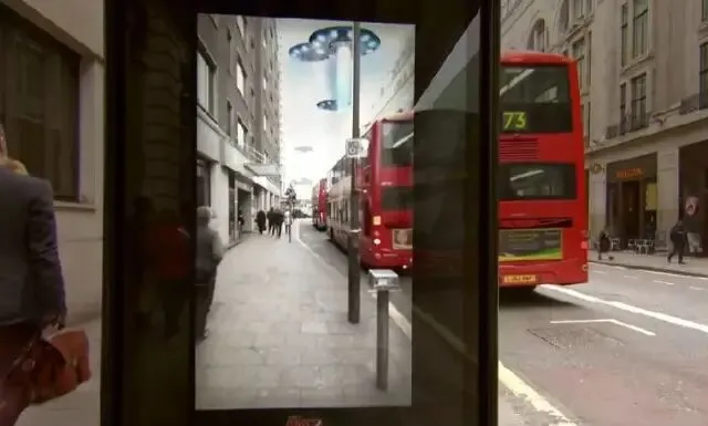百事可乐此前也曾在伦敦新牛津街巴士站设立过这样一个透明的AR显示屏,候车人会看到许多不可思议的东西:如外星飞碟,孟加拉虎,甚至卫星撞击地球、外星人掳走路人等等,在与行人趣味互动的同时,传达百事“Unbelievable”的品牌理念。