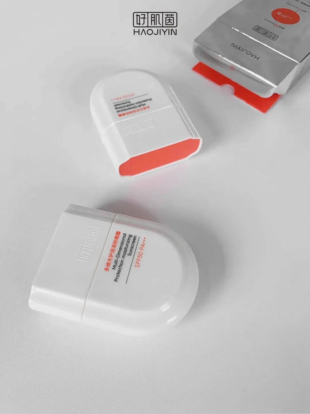 据介绍,橙白配色的好肌茵多维光护润泽防晒霜,采用5层阻隔包材,设计灵感来源于医生白大褂口袋。医生白大褂口袋给人的感觉是“专业、科技、信赖”,这一理念与好肌茵使命相契合。这款外观小巧又富有科技感的设计还申请了外观专利,因为便于携带,还收获了“小口袋防晒”的昵称。