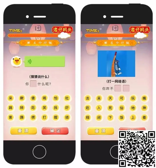 网络用语、雕塑名画、成语字谜、风景照片、表情ICON,甚至还有方言语音。当这些不同元素的内容混合在一起变成灯谜,挑战你的脑容量和脑洞深度。湾仔码头今年元宵打造了一副史上最呆萌最无厘头的灯谜。