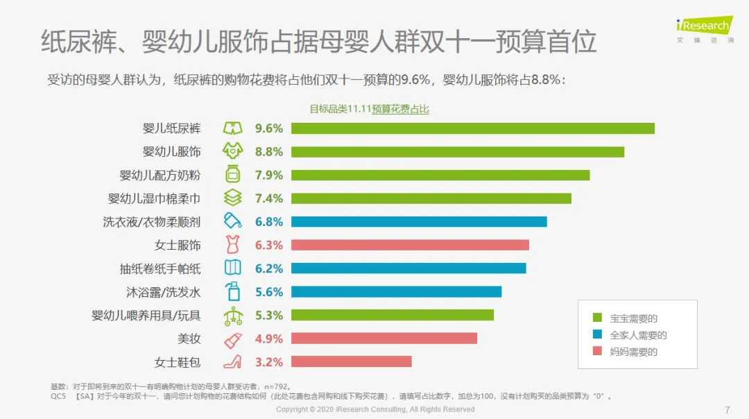 来源:艾瑞《2020年双十一母婴品类消费行为前瞻洞察》