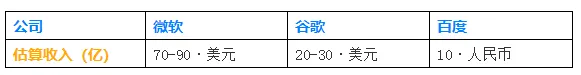 另外,参照亚马逊AWS2018全年营业收入为256.55美元、阿里云2018全年(2018财年第4财季加2019前3个财季)营业收入213.61亿元人民币,可以估算微软、谷歌、百度2018年公有云计算业务的收入如下: