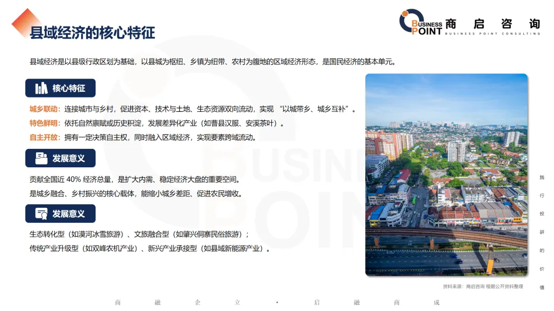 县域经济是以县级行政区划为基础,以县城为枢纽、乡镇为纽带、农村为腹地的区域经济形态,是国民经济的基本单元。