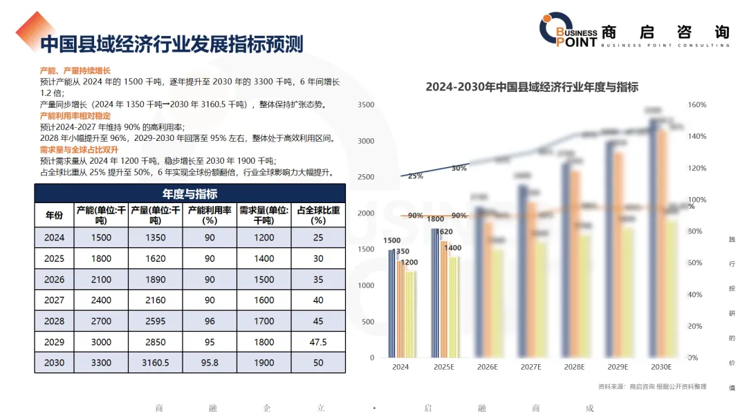 产量同步增长(2024 年 1350 千吨→2030 年 3160.5 千吨),整体保持扩张态势。