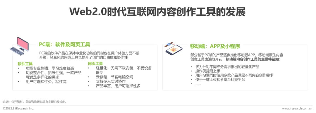 处理数字图像、音频、视频等内容的数字创意类工具伴随计算机的诞生和互联网的发展而持续迭代,在PC及移动端形成互为补充、多端互联的发展趋势。