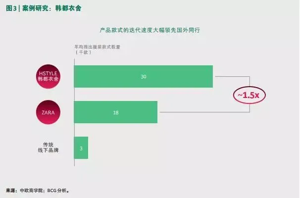“小”便是业界熟知的小组制了。韩都衣舍拥有300多个独立的产品小组,产品小组是真正的“自主经营体”,针对细分用户提供更多的产品款式,并通过市场进一步验证,优胜劣汰,韩都衣舍产品迭代速度达到ZARA的1.5倍,平均新推服装款式是传统线下企业的10倍,这也是为什么韩都衣舍能够以多款式胜出。