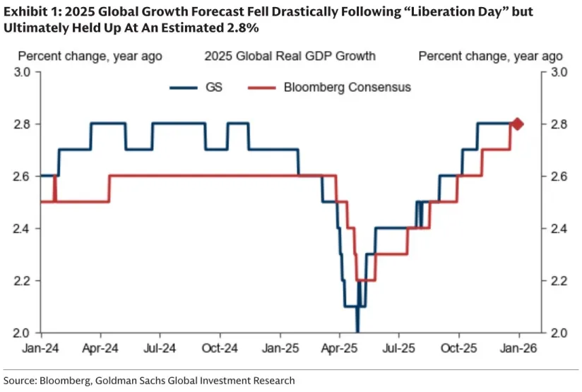 通过这些图表,高盛的报告全面分析了2025年全球经济的主要趋势,并对2026年的经济前景进行了深入展望。报告强调了全球经济面临的挑战和机遇,特别是AI技术的发展、贸易政策的变化以及货币政策的调整对经济增长、就业和通胀的深远影响。