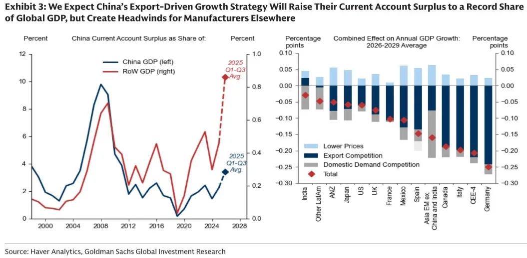 Exhibit 3:预计中国的出口驱动增长战略将使其经常账户盈余达到全球GDP的创纪录份额,但会为其他地方的制造商带来逆风