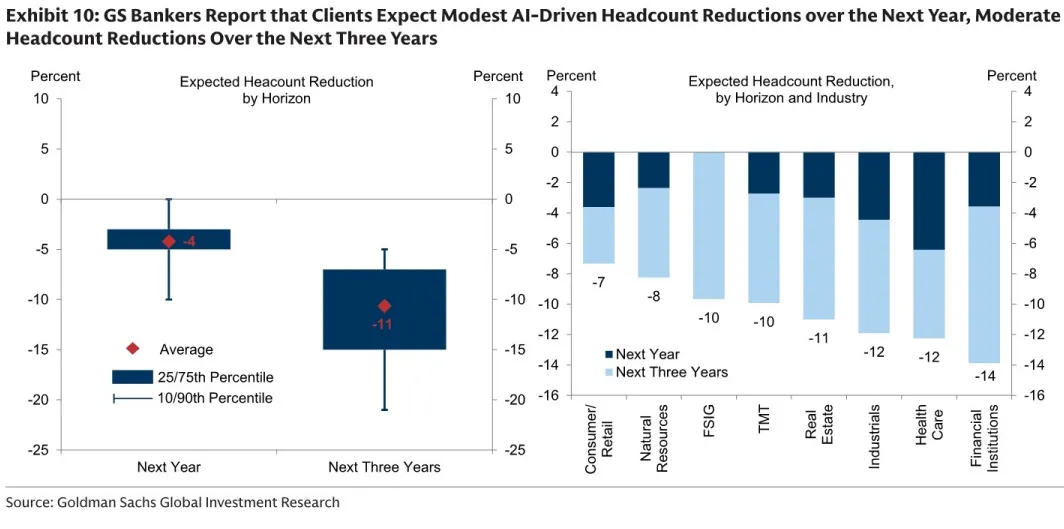 Exhibit 10:高盛银行家报告称,客户预计未来一年AI将导致适度的人员减少,未来三年将有更显著的人员调整