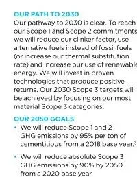 国外头部水泥企业在1.1指标得分为10分的有:Holcim、Heidelberg、UltraTech Cement、Cemex为10分,Votorantim Cimentos得分为5分。以Heidelberg在2021年可持续发展报告的相关披露信息为例:
