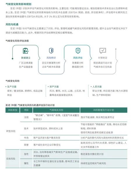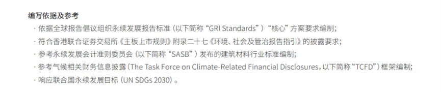 中国建材:管治(本集团与气候相关风险和机遇有关的治理情况)气候变化事宜属于ESG工作的其中一项内容,因此本集团气候变化相关事宜及识题亦由ESG工作小组负责,并由董事会指导、审议和监察,具体管理流程按照《中国建材股份有限公司环境、社会及管治工作小组管理制度》执行,管理架构讲详见报告“可持续发展管治”内容。