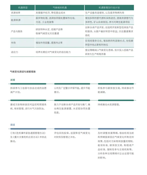 下图是国内水泥公司及国外头部水泥公司识别并披露气候变化相关风险机遇披露情况。