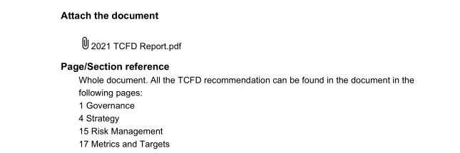 国外头部水泥企业在该指标方面有3家得到了10分,3家得到了5分。以Holcim的2021年TCFD报告中所披露的信息为例: