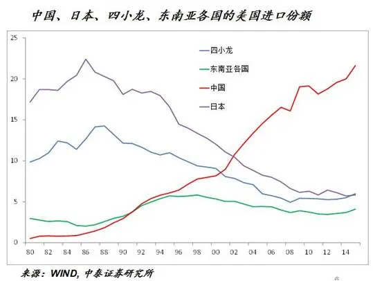20世纪80年代初,日本对美贸易顺差非常大,而当时中国主要出口农副产品;之后,中国对美贸易顺差越来越大,现在占到美国贸易逆差的50%,原因在于中国的崛起。我们在研究全球经济的时候,一定要注意到此消彼涨的现象。中国要成为发达国家、高收入国家是一个相对的过程,我们不能只看到我们在进步,还要看到别人也在进步,凡事都在发生变化,比如特朗普提出要对中国进行经济贸易制裁,因此,我们也不能对全球经济复苏带给中国的好处预期过高。