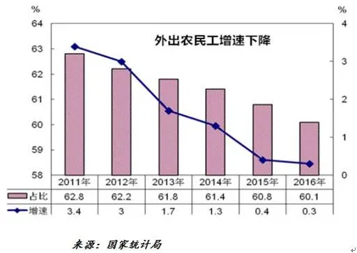 根据国家统计局公布的数据,2016年农民工收入名义增加约为6.6%,低于城镇和农村居民可支配收入的增长幅度。这不是一个好现象,所以“十九大”报告提出,到2020年实现全面脱贫,消灭贫困人口。