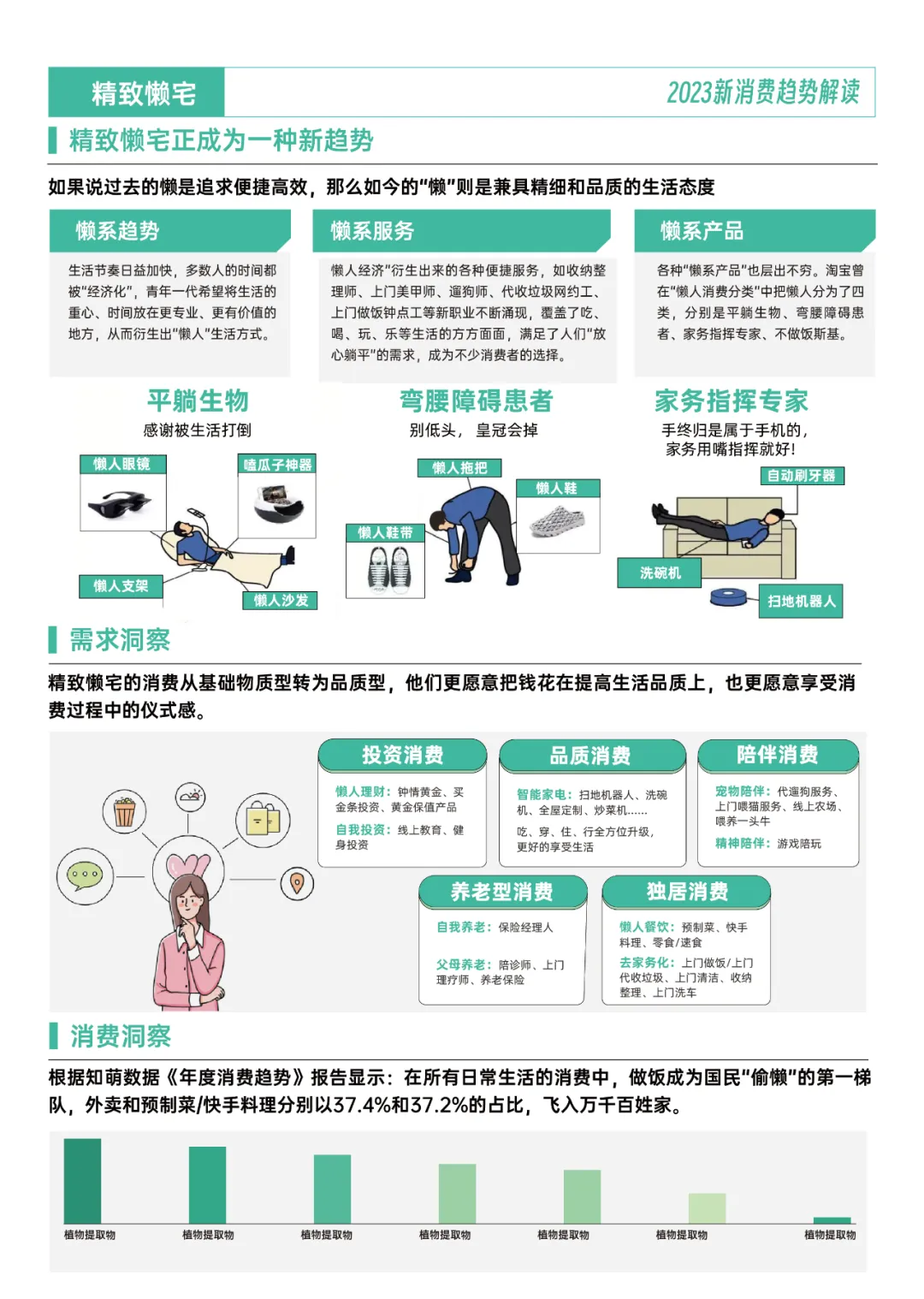 · 懒人消费关键词:消费升级、精致悦己、上门服务、健康C位、科技智能。