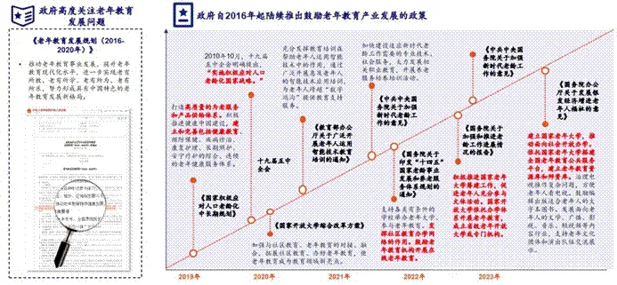 我国中老年教育处于早期阶段,有极大的发展空间。政府高度关注中老年教育发展问题,自2016年起陆续推出鼓励老年教育产业发展的政策。