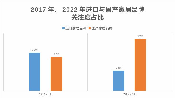 过去十年随着我国经济、科技、文化等领域快速发展,国潮的关注度上涨了528%。时代进步的今天让国民的思想也发生了巨大的转变。如今,消费者对于国货的热爱不亚于进口品牌,而近几年进口家居品牌在中国市场也渐渐失去了主导地位,被忽略的国货家居品牌以崭新的品牌形象露出,重新占据主导。