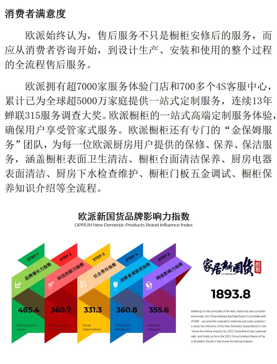 科技创新是实现企业高质量发展的有效路径,是衡量国家产业核心竞争力的重要标志,也是中国制造业的脊梁。家居企业加快智能制造的进程,充分利用“互联网+”行动计划,将研发、生产、经营、管理等全过程融入信息化系统中,通过互联网实现跨越式发展,逐步实现从生产型制造向服务型制造转型,迅速提升综合竞争力,迈向产业价值链的高端,为“中国智造”助力。科技创新指数将从研发投入占比、技术成果、科研潜力等多方面综合评定。企业社会责任(Corporate social responsibility,简称CSR)是指企业在创造利润、对股东和员工承担法律责任的同时,还要承担对消费者、社区和环境的责任,企业的社会责任要求企业必须超越把利润作为唯一目标的传统理念,强调要在生产过程中对人的价值的关注,强调对环境、消费者、对社会的贡献。企业的经营活动要以消费者满意度为指针,要从客户的角度、用客户的观点而不是企业自身的利益和观点来分析考虑客户的需求,尽可能全面尊重和维护客户的利益。本研究依托China Hadoop大数据针对家居新国货品牌在服务满意度方面内容的数据收集和分析。