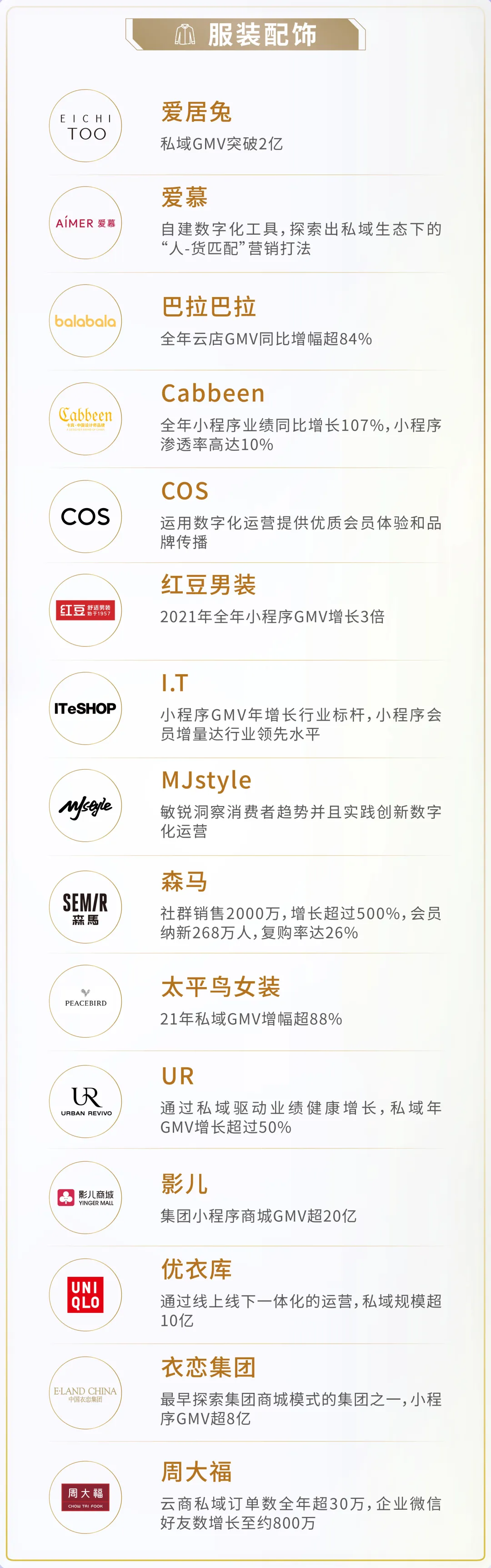 年度行业标杆-服装配饰上榜品牌