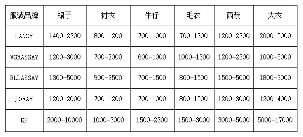 5.1每一个高端女装品牌产品风格不多款式有限,有自己擅长的一个品类和独特面料。高端女装品牌至少有一品类有特长或特有面料、便于品牌记忆(如Burberry风衣)。朗姿有印花连衣裙,歌力斯高级通勤服,雅莹服饰浓烈中国文化等。因产品价格高,每个品牌销售数量有限,这样品牌就不能做很多系列风格,高端女装风格系列都不多。而大众服装品牌ZARA、优衣库产品系列就很多,单个门店面积也大。