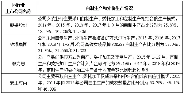 5.2高端女装供应链因对品质要求高,都采用自己生产为主和委托加工为辅的方法。因为服装款式变化,像羽绒、皮衣等还需要特殊生产设备,服装品牌并不具备生产所有服装的能力,委托第三方加工也成为中高端女装选择。中高端女装单款数量并不大,能够支撑的外部高质量供应链也有限,各品牌自己生产服装比例高达40%-50%。而大众服装自己生产的比例在10%左右,90%委托第三方生产,这是中高端女装与大众服装在供应链环节的不同。