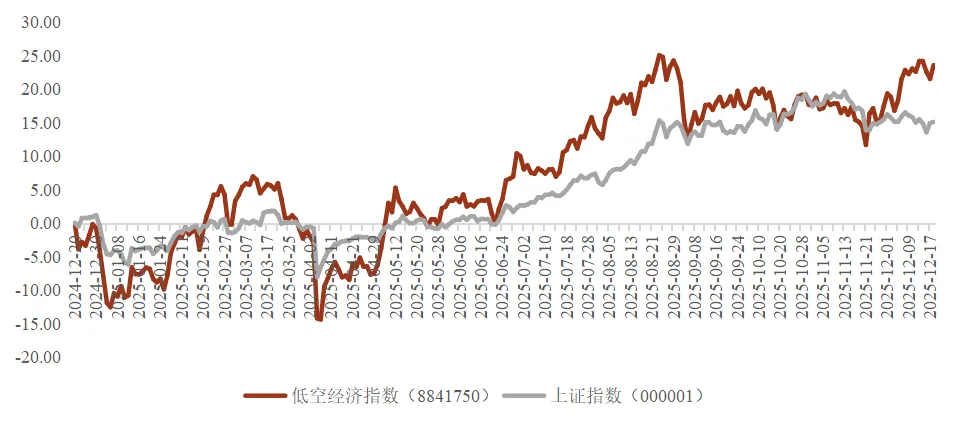 图表2:低空经济指数及上证指数累计涨跌幅对比(%)