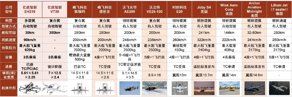 资料来源:eVTOL News,各公司官网,中金汇融整理