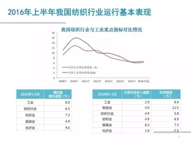 以下为中纺联产业经济研究院发布的2016年上半年纺织行业经济运行综合分析报告: