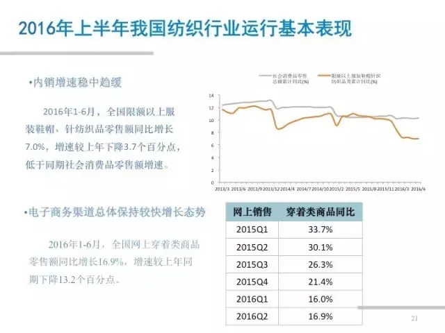 此次会议为期两天,当天上午,新近成立的中纺联产业经济研究院发布了2016年上半年纺织行业经济运行综合分析报告。