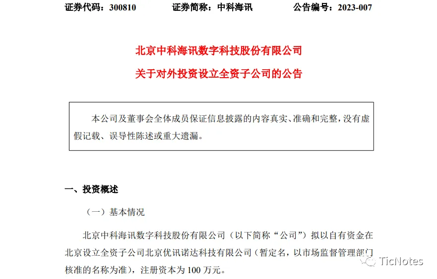 案例一:中科海讯(300810.SZ)新设公司以对外开展电子设备环境检测服务业务