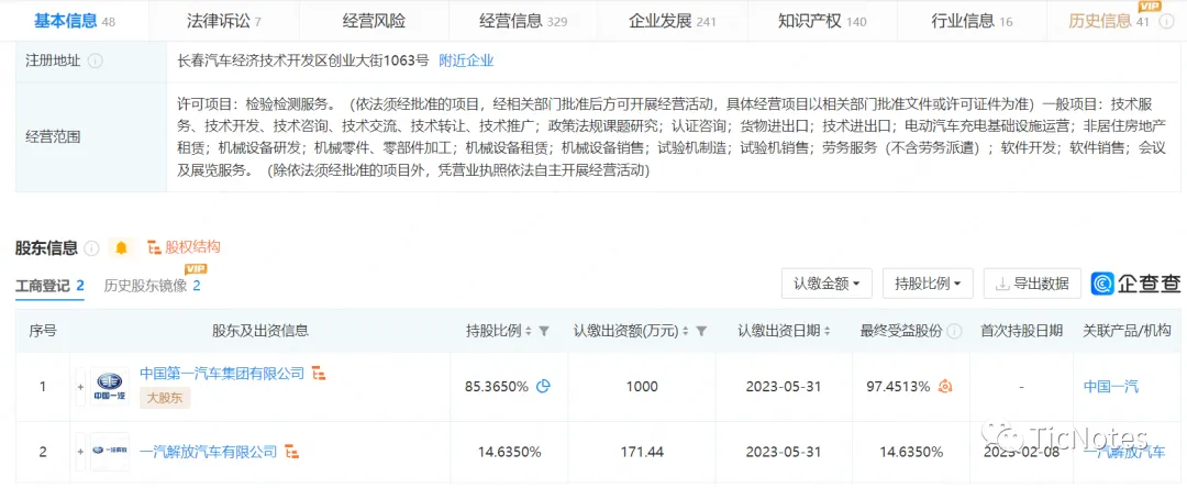 2022年12月15日,一汽解放发布公告,公司所属子公司一汽解放汽车有限公司为进一步做好公司产品一致性的管控以及新能源、智能网联等产品的研发测试及认证检验,拟投资长春汽车检测中心有限责任公司,投资金额为6.71亿元。