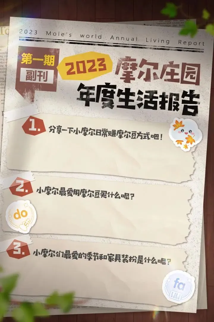 活动方式:填写生活报告中任意一期副刊,并带话题#我的摩尔年度生活报告#分享至微博摩尔庄园超话/小红书,即可参与活动。